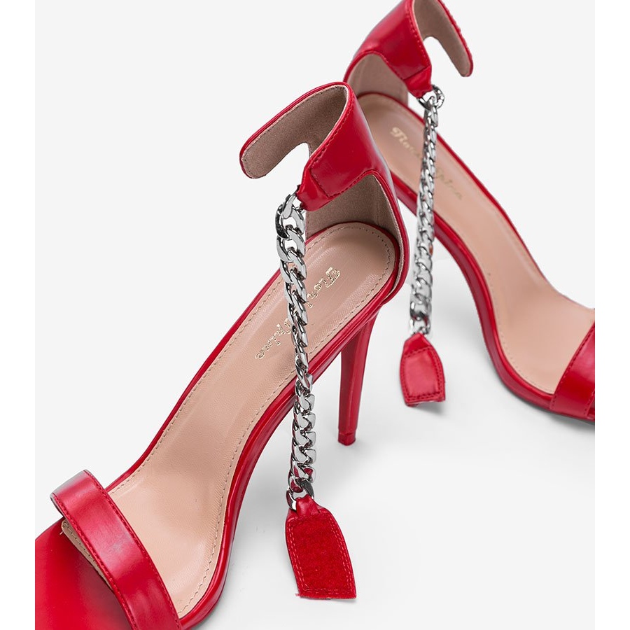 As sandálias são fechadas com uma estilosa corrente de velcro, que garante conforto e um detalhe original no visual. Graças à numeração padrão, você pode escolher facilmente o tamanho perfeito para você. A combinação da cor vermelha com um corte clássico faz das sandálias Trendny um complemento perfeito para o estilo do dia a dia e para a noite.