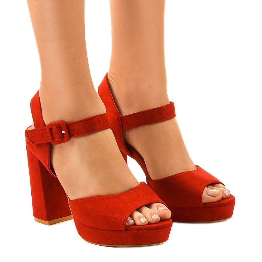 Detalhes: Sandálias vermelhas em um poste de camurça 77-102 vermelho