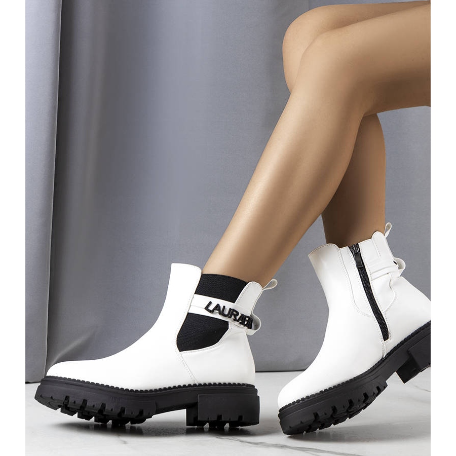 Botas brancas isoladas e isoladas - estilo e conforto para dias frios. Um corte branco clássico e atemporal feito de couro ecológico, isolado com pêlo macio, proporcionará calor e conforto durante o outono e o inverno.