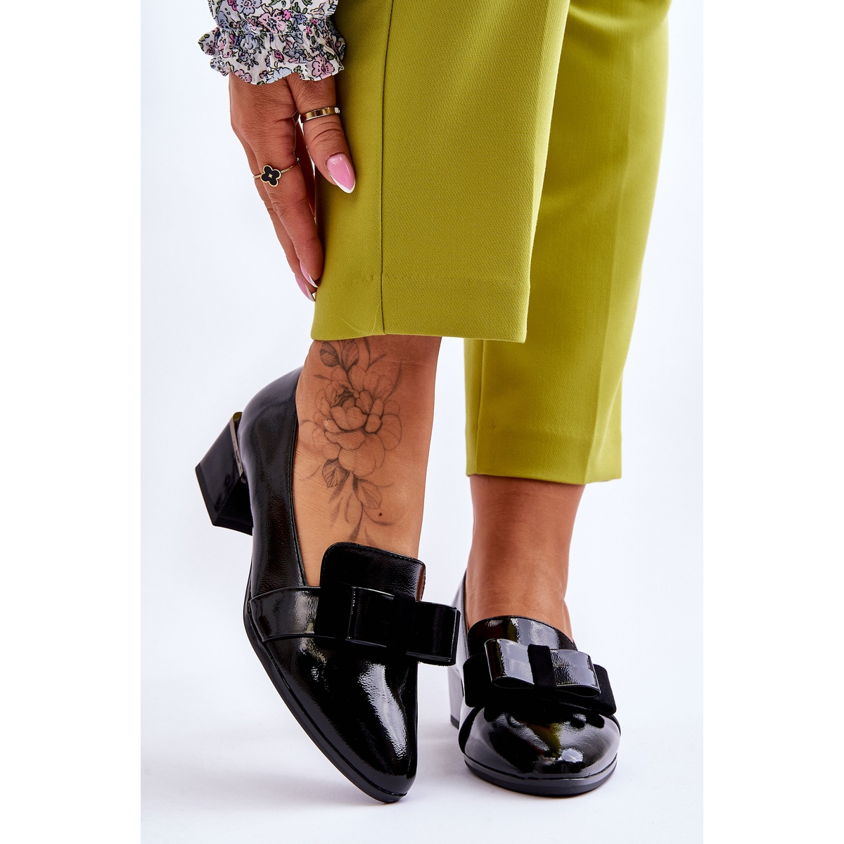 Aqui estão os sapatos que vão deliciar todos os amantes da elegância e do conforto - Sapatos elegantes de couro envernizado Vinceza com laço decorativo na cor preta. Estes sapatos estilosos foram projetados para mulheres que desejam combinar um visual moderno com conforto de uso.