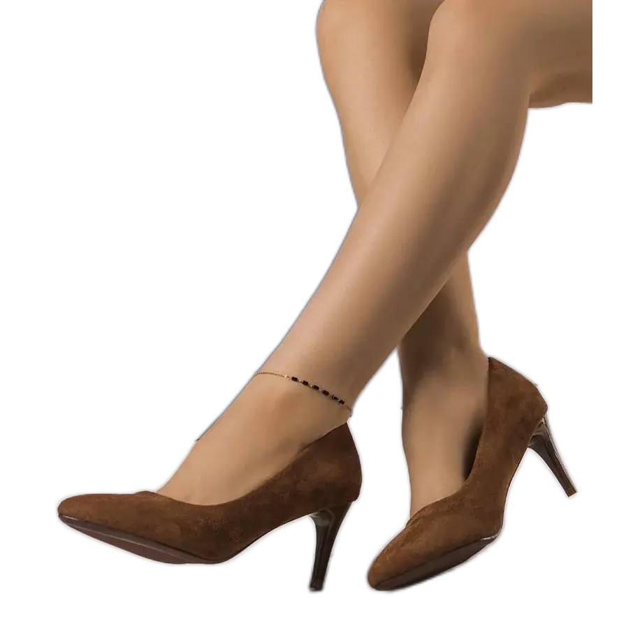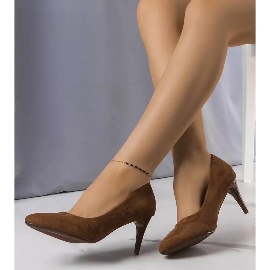 Os estilosos e elegantes sapatos de salto agulha Amille em marrom serão um complemento perfeito para o guarda-roupa de qualquer mulher. O modelo PA1, marcado com o número YES-2888-2, caracteriza-se por um design clássico e alta qualidade de acabamento. Confeccionados em couro camurça ecológico, garantem conforto de uso, e a biqueira amendoada confere sutileza.
