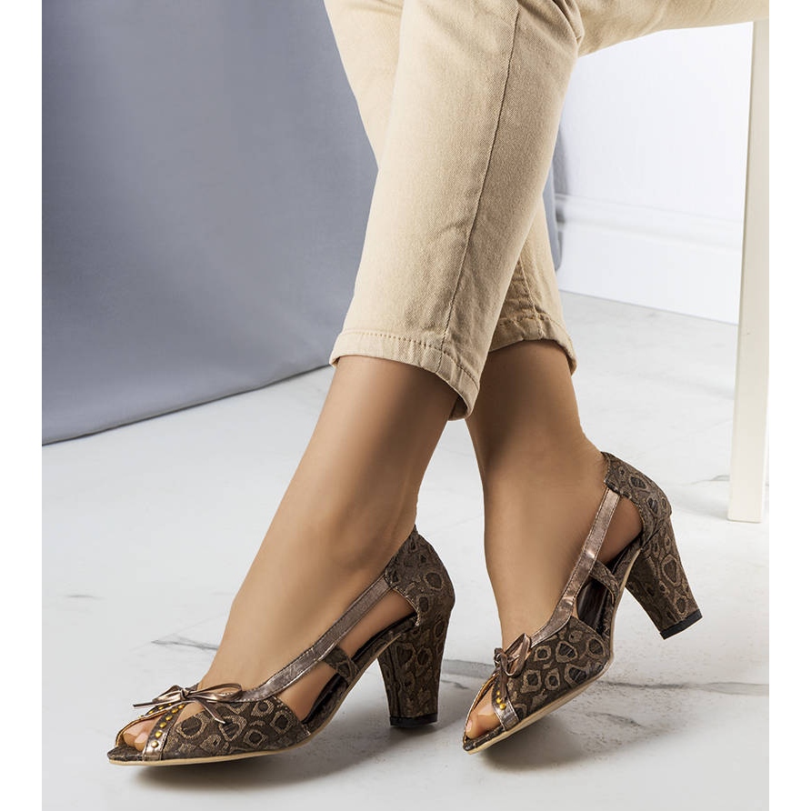 Detalhes: PA1 Sapatilha de salto alto marrom da Lavra castanho cobre