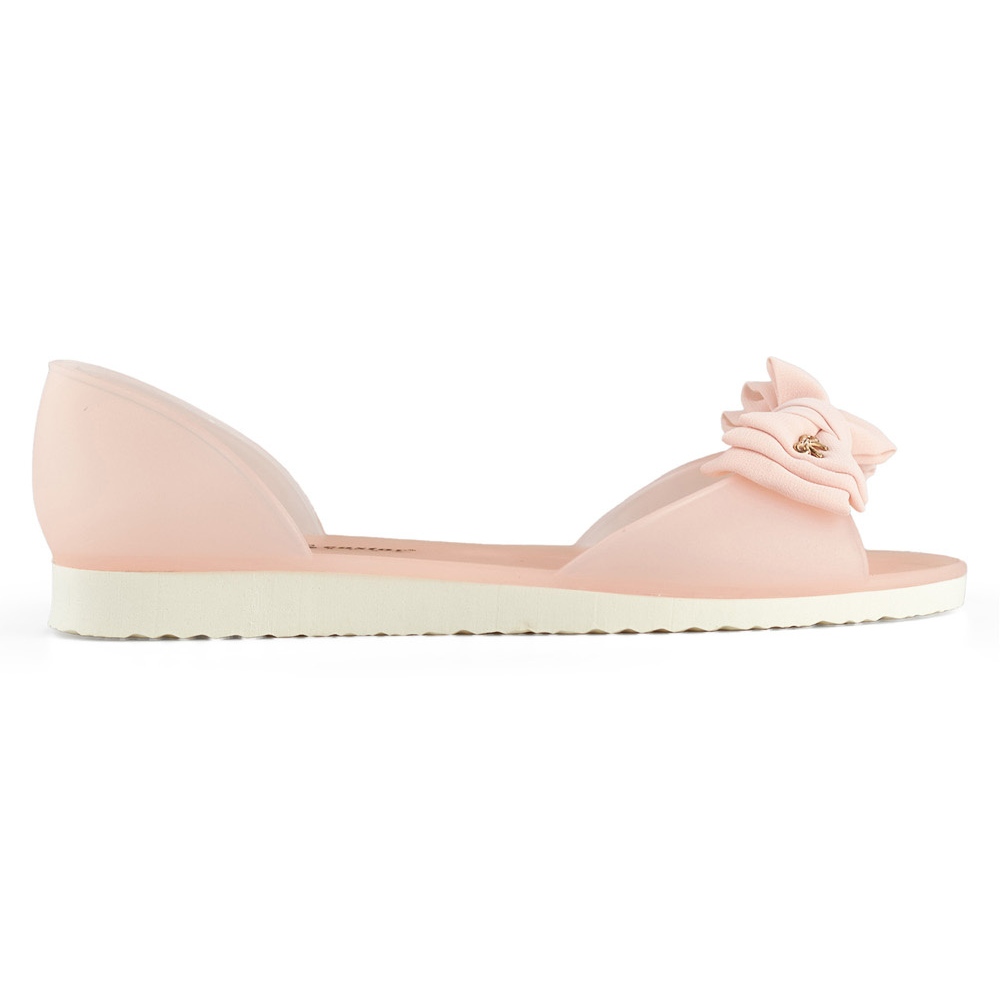 Detalhes: Sapatilhas abertas rosa claro com laço