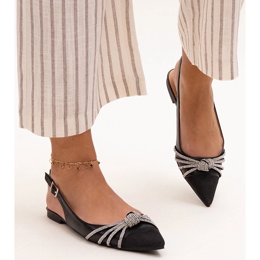 Descubra a elegância e o estilo com bailarinas pretas em preto, que combinam perfeitamente conforto e aparência elegante. Essas bailarinas exclusivas com um dedo pontudas, decoradas com zircões sutis, são a escolha perfeita para os dias de verão, adicionando todas as estilização de estilo e sofisticação.