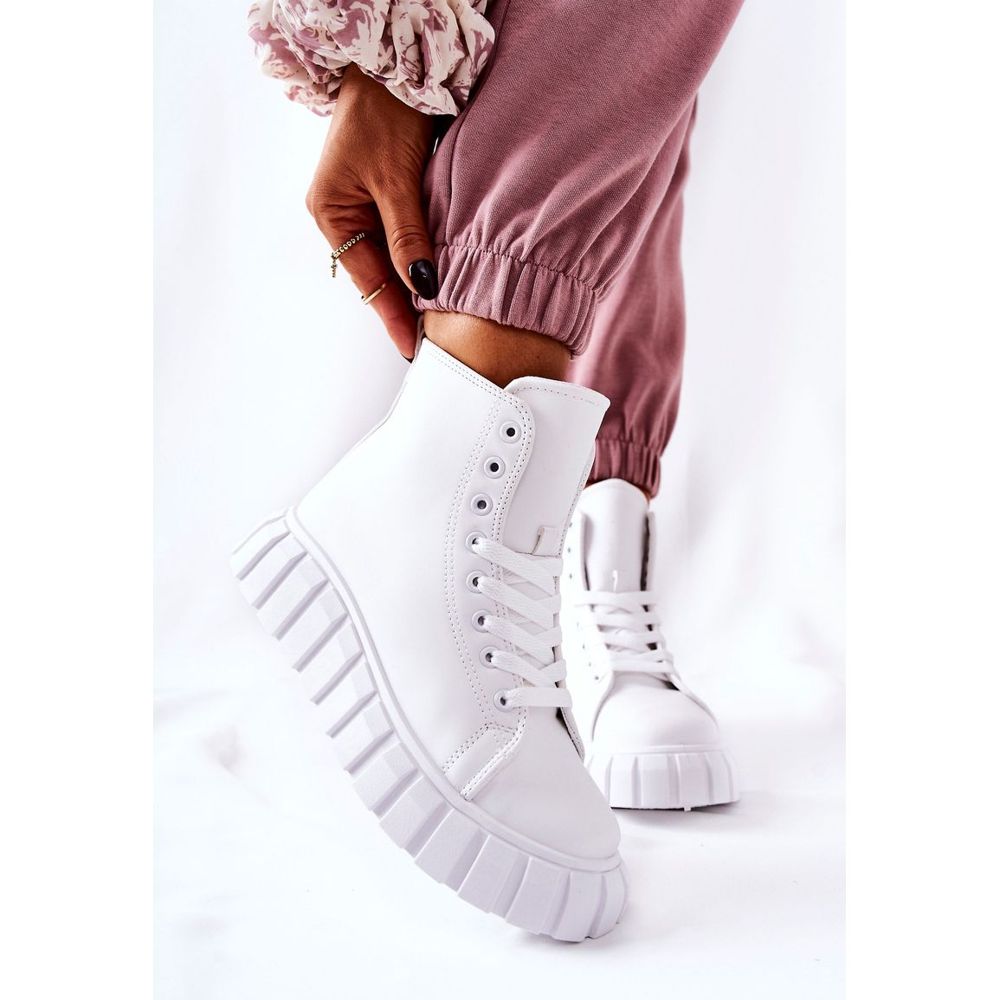 Detalhes: Sapatilhas de couro de cano alto na plataforma branca Meniphise branco