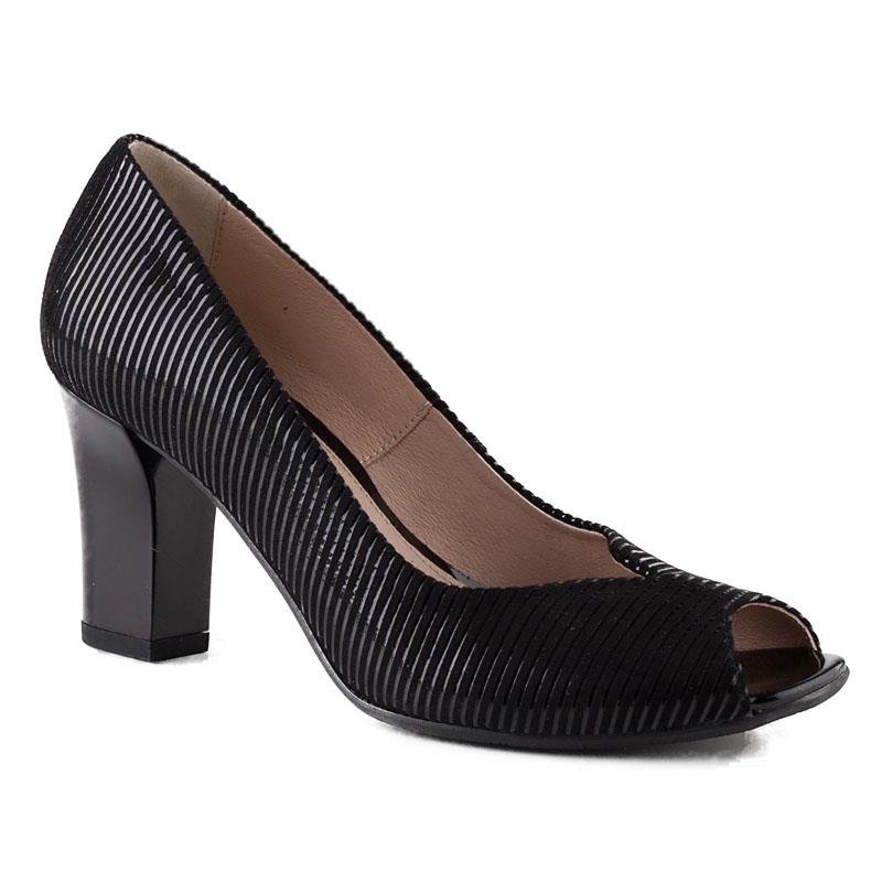 Os escarpins Marco Shoes são uma escolha elegante para toda mulher moderna que deseja adicionar um toque de sofisticação ao seu estilo. Feitos em couro camurça natural preto de alta qualidade, estes sapatos combinam perfeitamente o design clássico com o moderno. Expressivas listras decorativas na parte superior chamam a atenção e conferem-lhes um caráter original.
