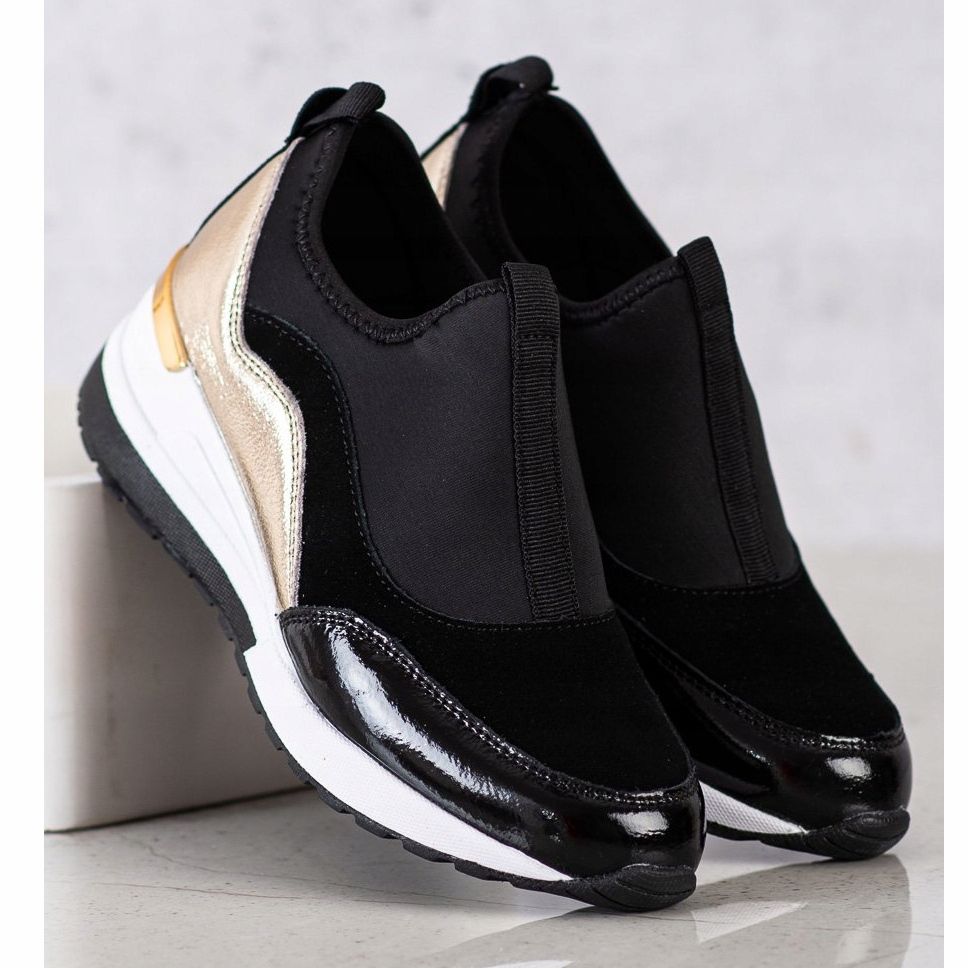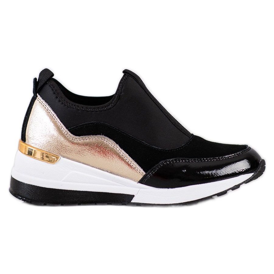 Detalhes: Goodin Tênis de couro cunha preto dourado