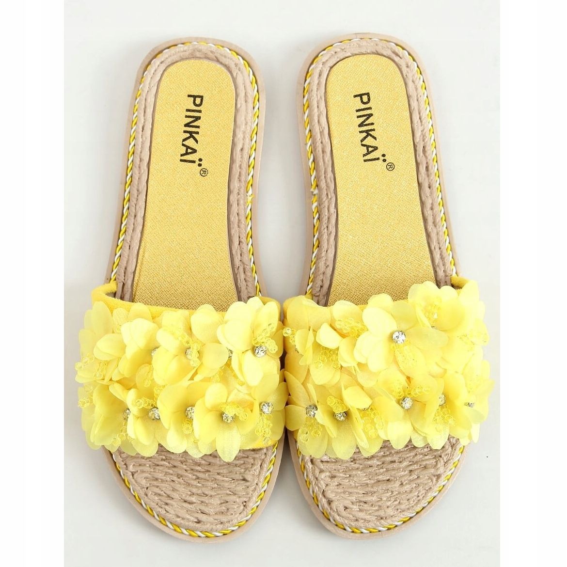 Aproveite o verão com os chinelos amarelos LS003 amarelos com flores! Estes encantadores chinelos femininos com sola flexível são a escolha perfeita para o estilo do dia a dia. Confeccionados em camurça ecológica, combinam conforto com design moderno. O seu carácter único é realçado por lindas flores decoradas com pedras brilhantes, que lhes conferem um encanto único e dispensam quaisquer outras decorações.