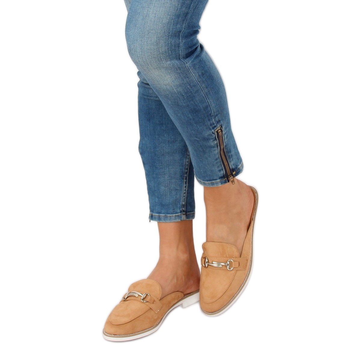 Descubra elegância e conforto com os mocassins castanhos camel F9375. Estes elegantes chinelos femininos combinam um corte clássico de mocassim com detalhes modernos, criando um modelo único para cada ocasião. A frente fechada e a área do calcanhar aberta proporcionam conforto e um visual elegante ao mesmo tempo.
