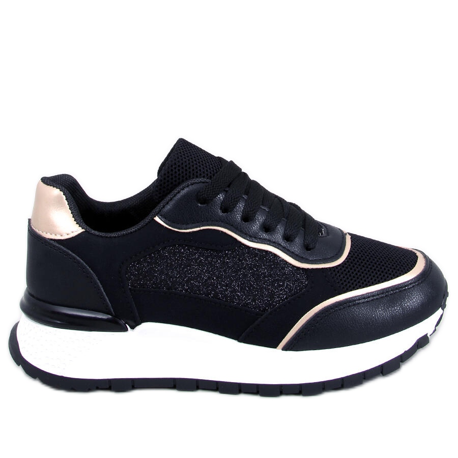 A Breland Black é tênis esportivos para mulheres esportivas, com uma sola espetacular e alta (plataforma aproximadamente 5,5 cm), que combinam uma aparência elegante com conforto todos os dias. O corte bem torneado foi suplementado com inserções metálicas e glitter, graças às quais os sapatos são ótimos para estilizações casuais e mais expressivas.