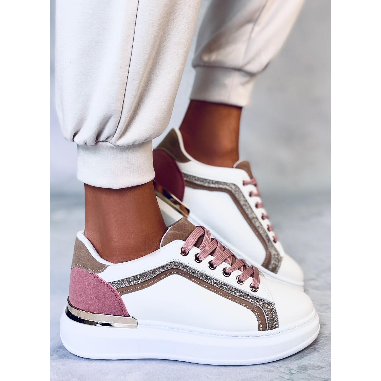 Detalhes: BM Sapatilhas de mulher Brengle White branco rosa multicolorido