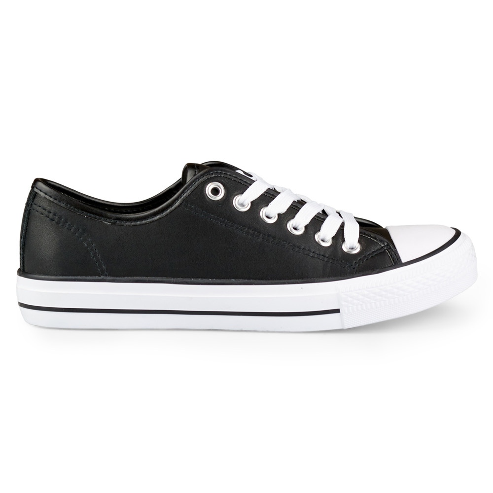 Detalhes: Sapatilhas de mulher em pele ecológica pretas preto