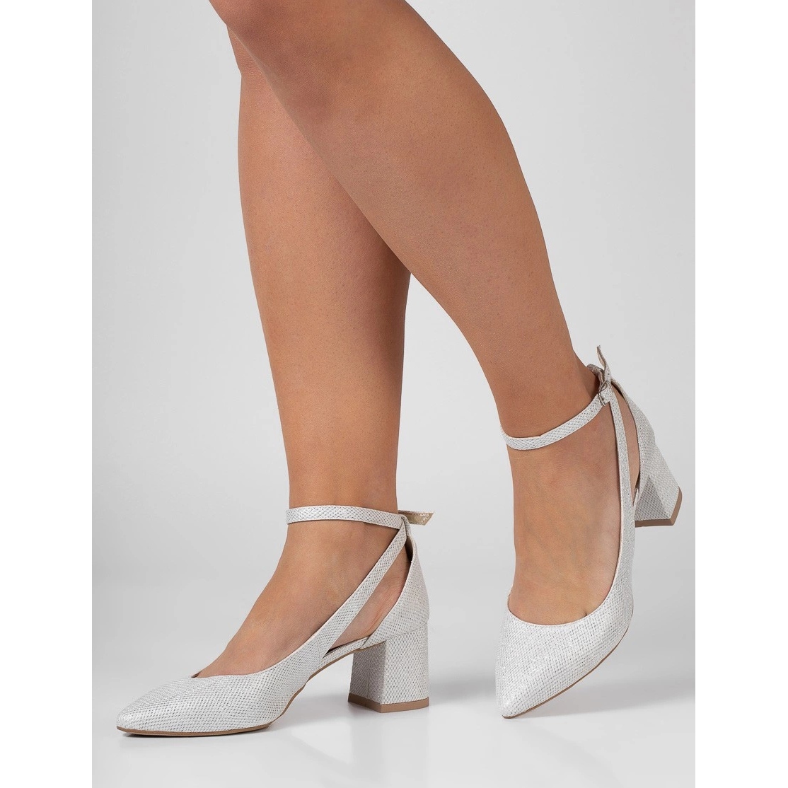 As bombas são caracterizadas por um nariz com ponta que flagmaticamente flag, enfatizando a linha da panturrilha. Graças ao salto estável de 6 cm de altura e às listras ao redor do tornozelo, os sapatos grudam bem nos pés, garantindo conforto durante a dança e uso longo.