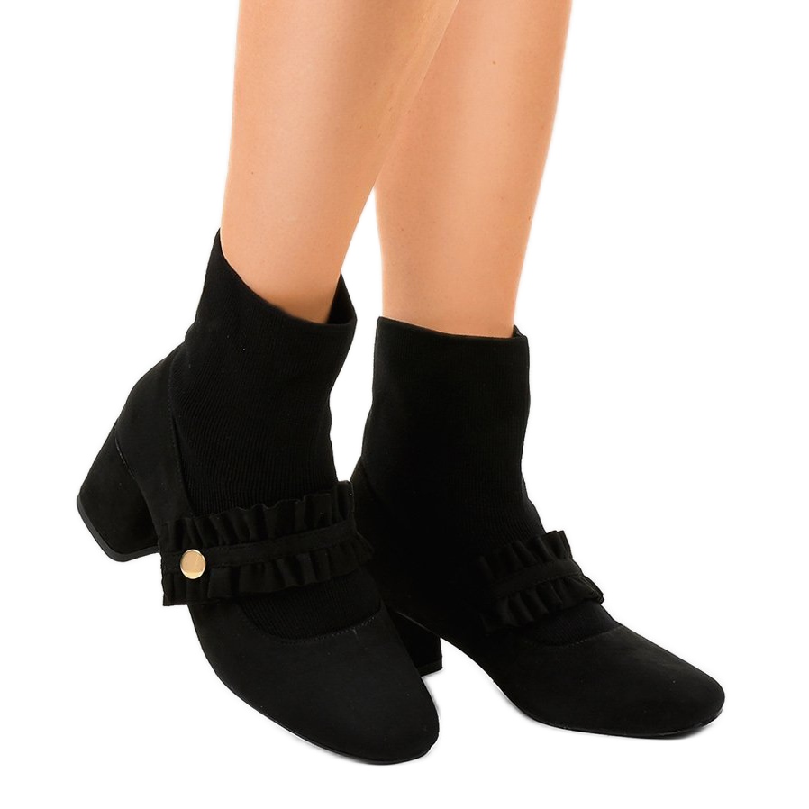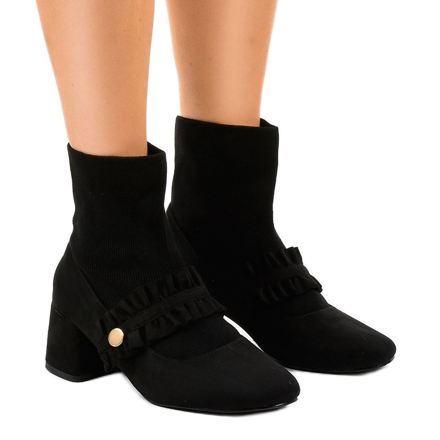 Os sapatos de salto alto de veludo preto JM8118Y são a escolha perfeita para mulheres que procuram elegância e conforto em um só. Estes sapatos elegantes, feitos de material semelhante a camurça, distinguem-se por detalhes adicionais, como uma parte superior decorativa e uma meia confortável, o que os faz combinar perfeitamente com uma variedade de estilos.