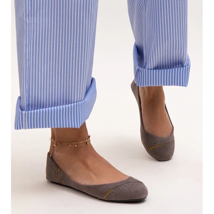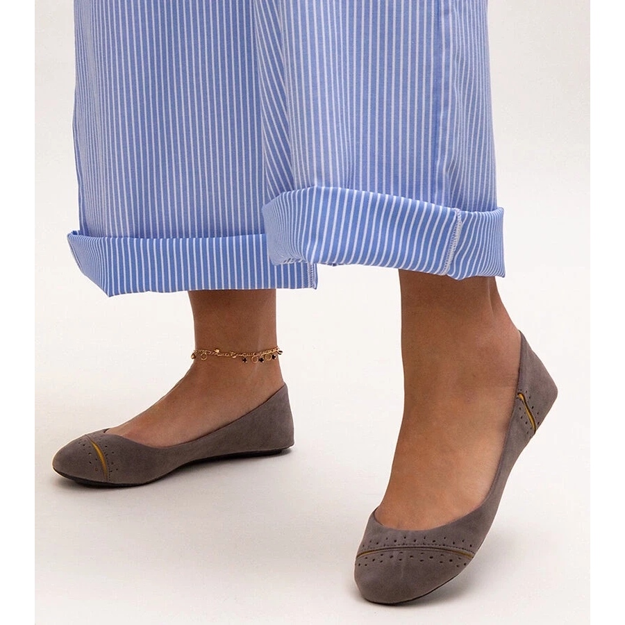 Apresentamos o Grey Classic Dorris Ballerinas - a escolha perfeita para os dias de verão que combinam elegância e conforto. Esses sapatos de balé são distinguidos por um dedo do pé de amêndoa, o que lhes dá um caráter sutil, mas também na moda. Graças à sola baixa e plana de borracha, você pode desfrutar de conforto o dia todo, sem desistir de um estilo único.