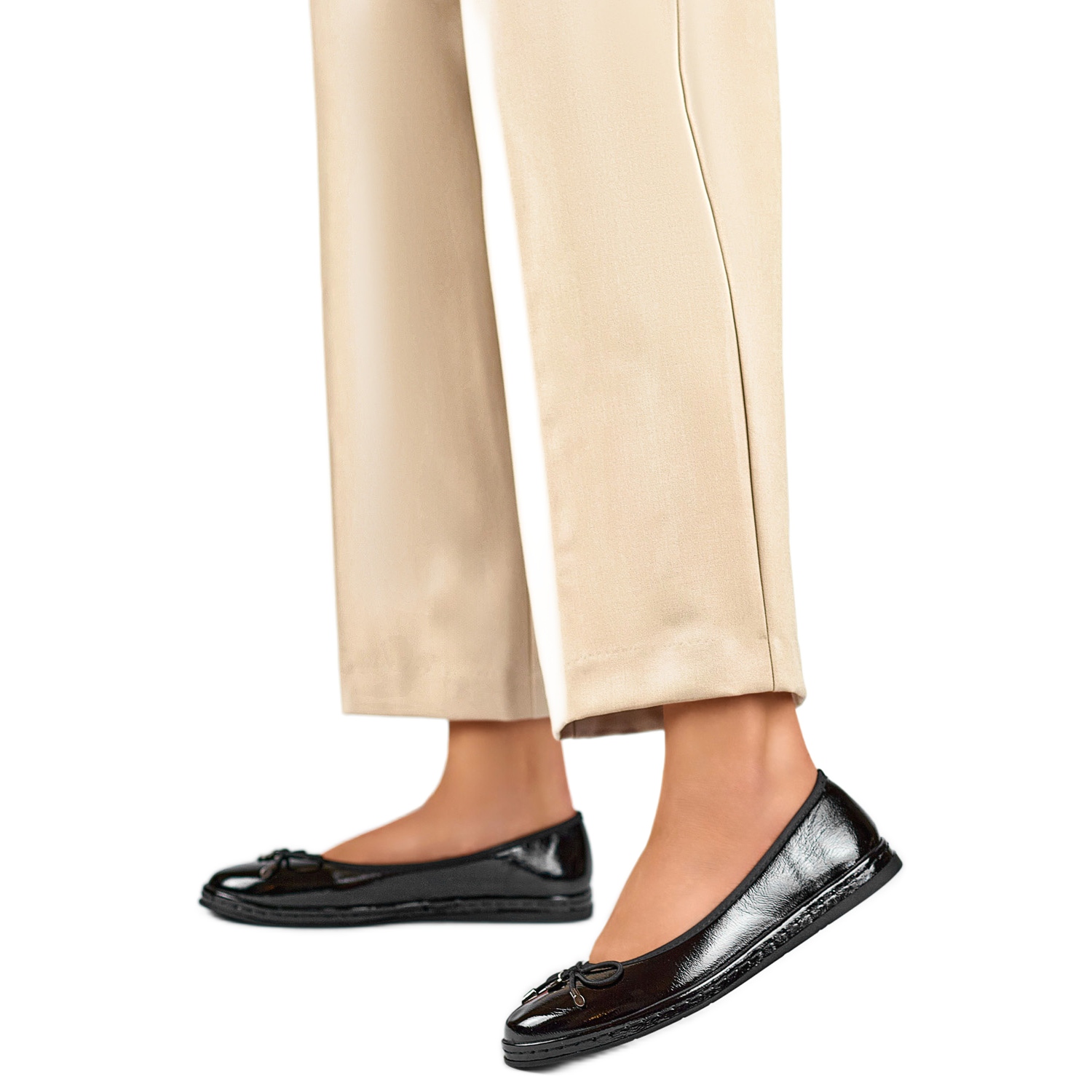 Detalhes: Sapatilhas femininas com laço GD-XR392-B lacado preto