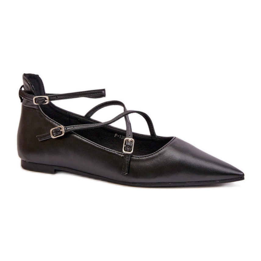 Detalhes: Sapatilhas femininas de couro ecológico com bico pontiagudo, pretas preto