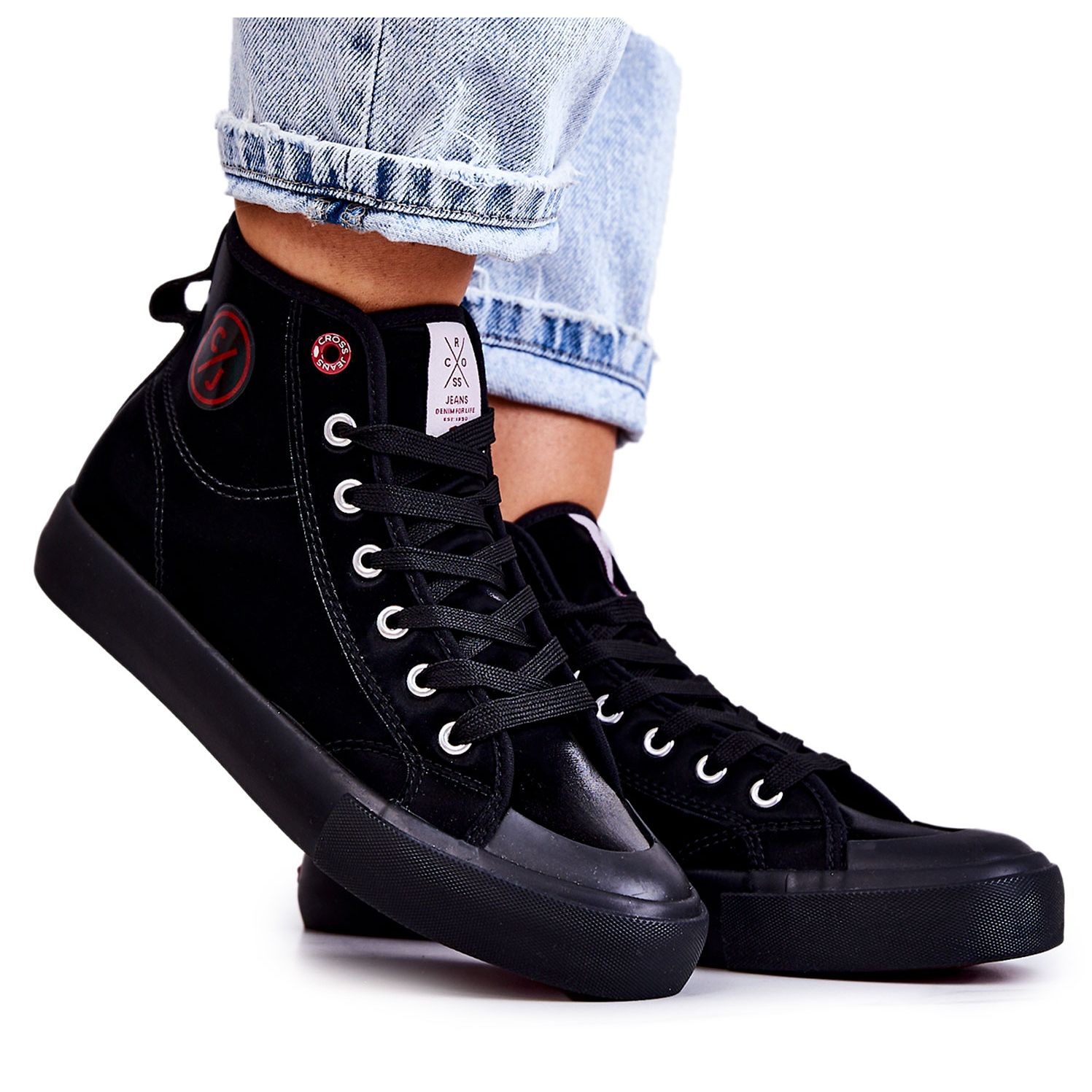Tênis altos femininos Cross Jeans JJ2R4055C - Corte clássico preto, com detalhes modernos