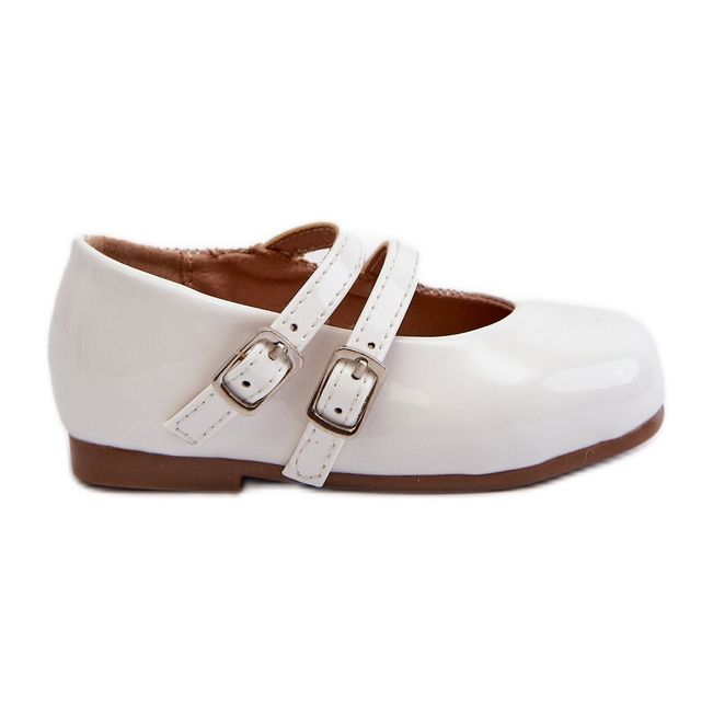 ** Ballerinas infantis envernizadas com cintos brancos de Margenis **