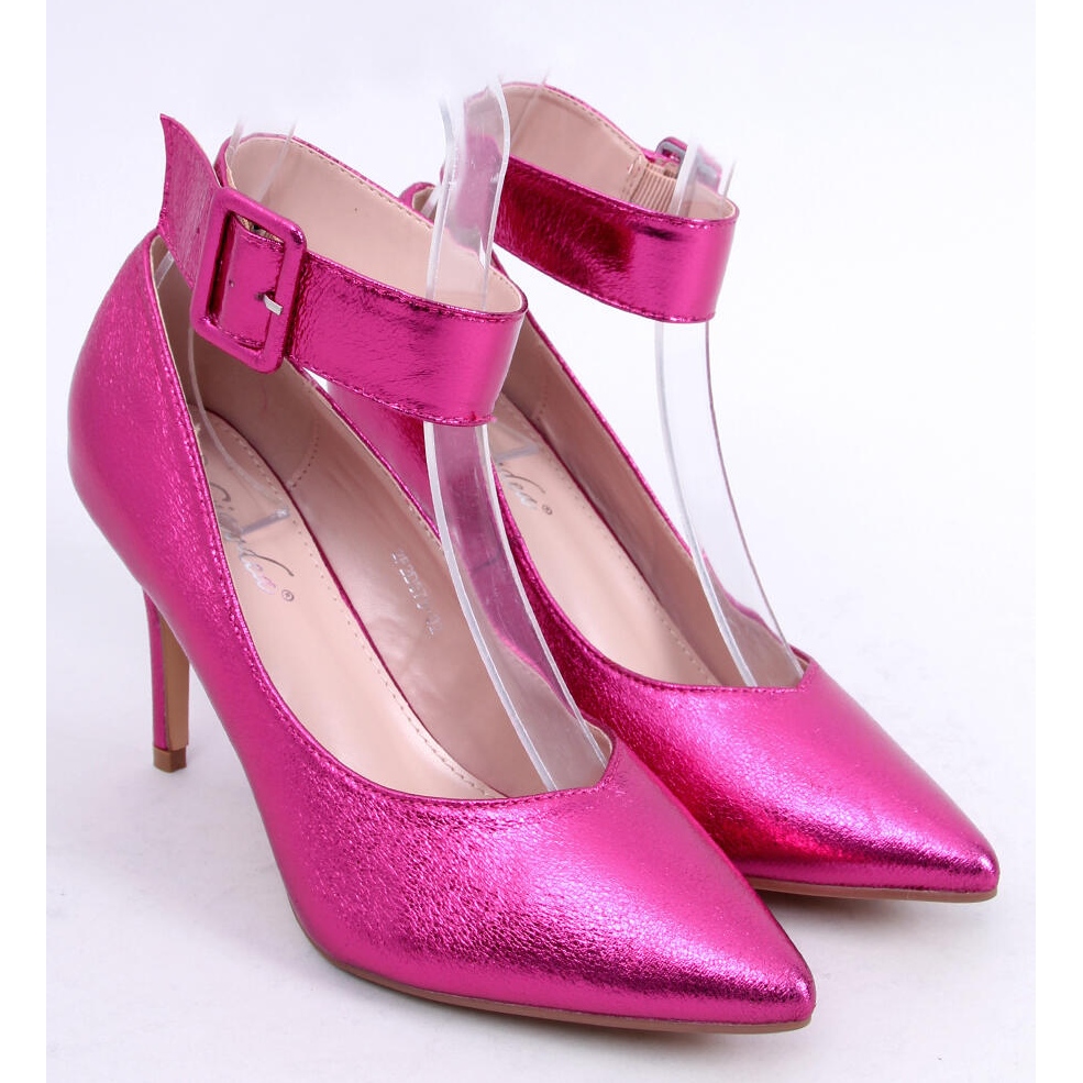 Bombas metálicas em um salto de 9,5 cm de altura - ideal quando você deseja fazer uma entrada eficaz. Claire Fushia se deleita com um corte puro e delgado e um brilho intenso e metálico, o que dá à estilização um personagem único. O modelo tem uma alça de fixação discreta no tornozelo, que enfatiza a elegância e melhora a estabilidade ao caminhar. Feito de couro ecológico de grãos, com uma inserção confortável do mesmo material e uma sola sintética durável. O nariz é apontado - um clássico em uma edição moderna.