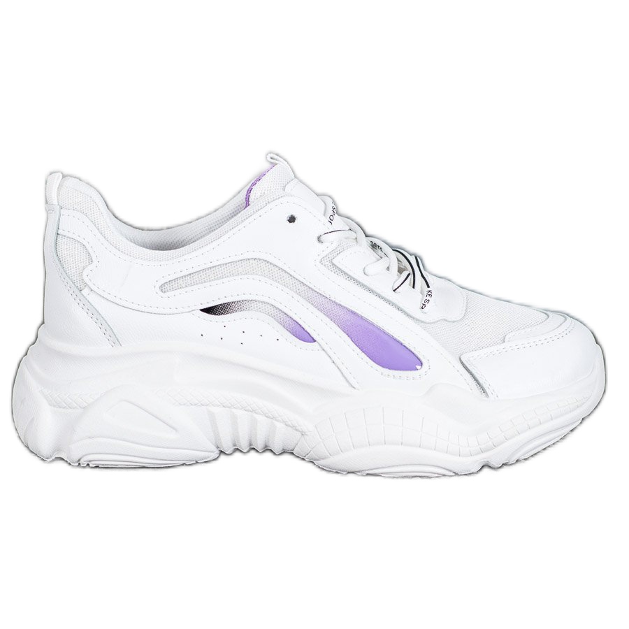 Esteticamente, este modelo distingue-se por uma tonalidade branca na parte superior, decorada com um toque roxo, que confere um carácter único. A cor branca universal torna-os um complemento versátil para muitos conjuntos - desde jeans e moletons casuais até saias e vestidos mais elegantes.
