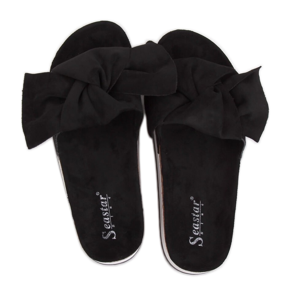 Os chinelos femininos pretos SS116P Black são a escolha perfeita para os dias de verão, aliando elegância e conforto. Confeccionados em camurça ecológica, esses chinelos impressionam não só pela qualidade, mas também pelo design moderno. O grande laço que decora o seu top confere-lhes um carácter único e torna-os não só num calçado, mas também num toque de moda em qualquer estilo.