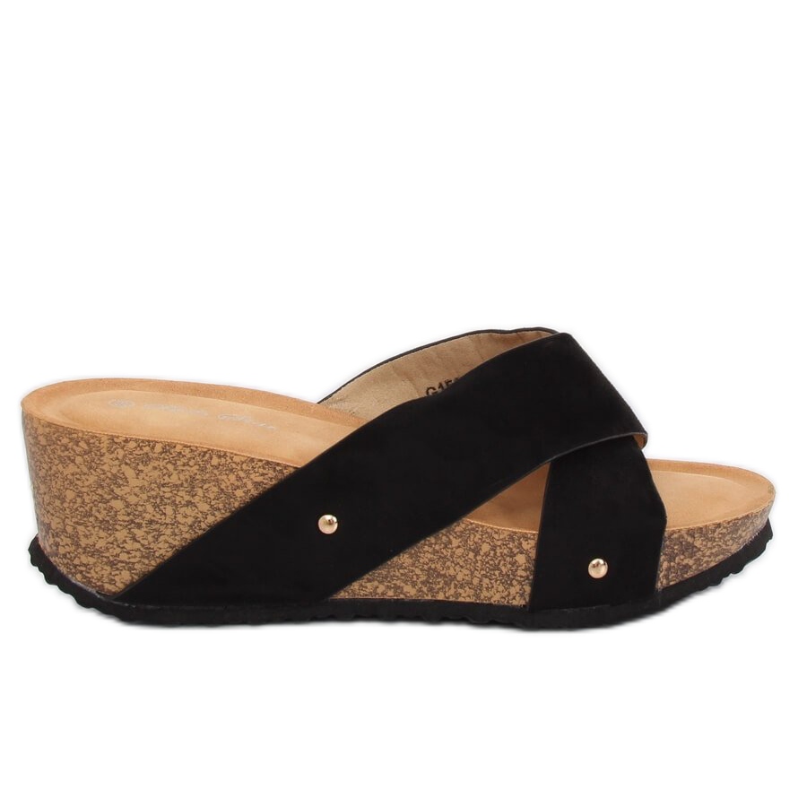 Detalhes: Sapatilhas pretas G1560 de cunha preta preto