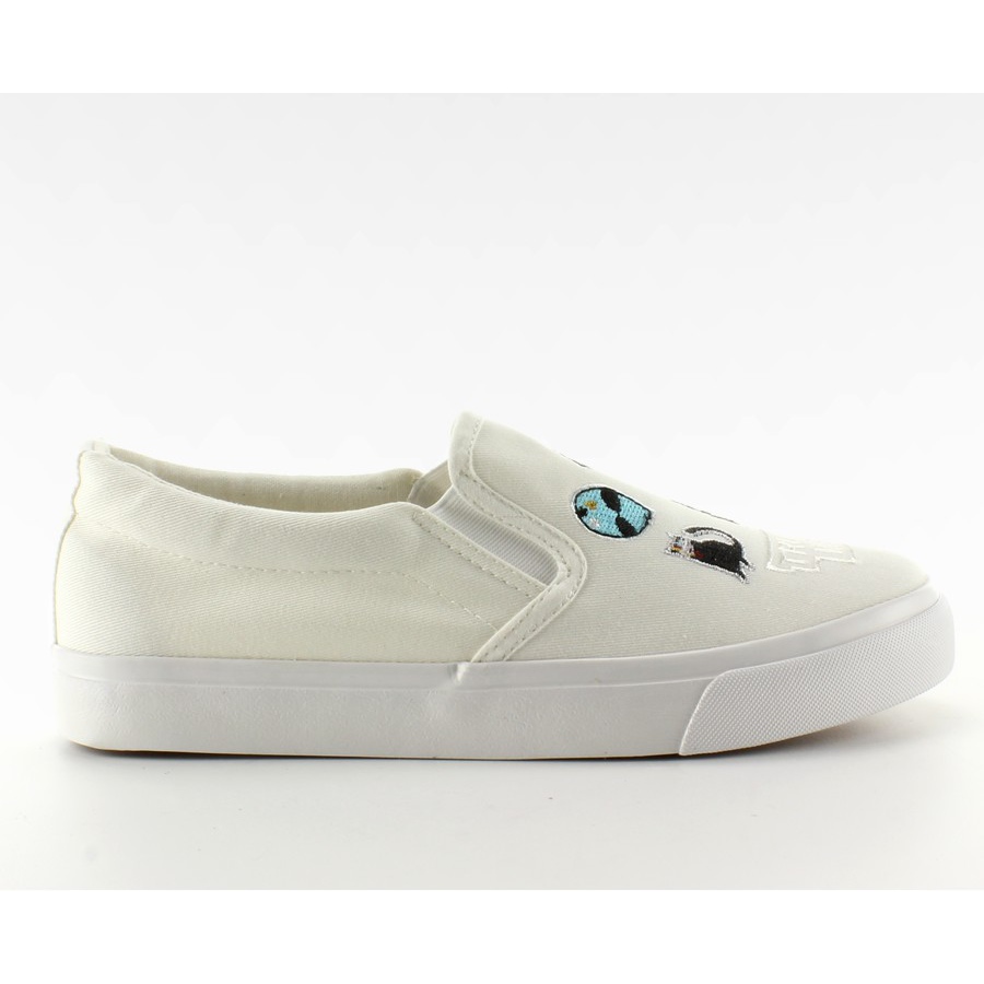 Detalhes: Sapatilhas slip-on com bordado branco NB102P