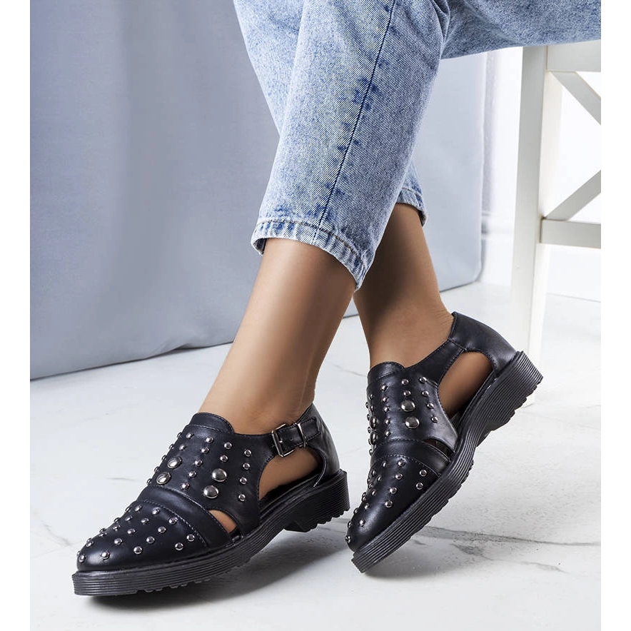 Os elegantes sapatos femininos de Elean se distinguem por uma decoração rica (strass e pregos) e recortes elegantes que adicionam folga e caráter. Perfeito para estilizações casuais de verão - elas se misturam bem com jeans, shorts ou vestido leve.