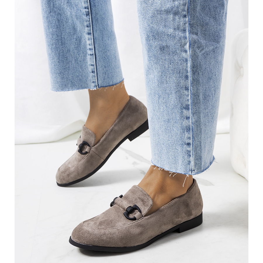Detalhes: Sapato cinza de couro Talisa
