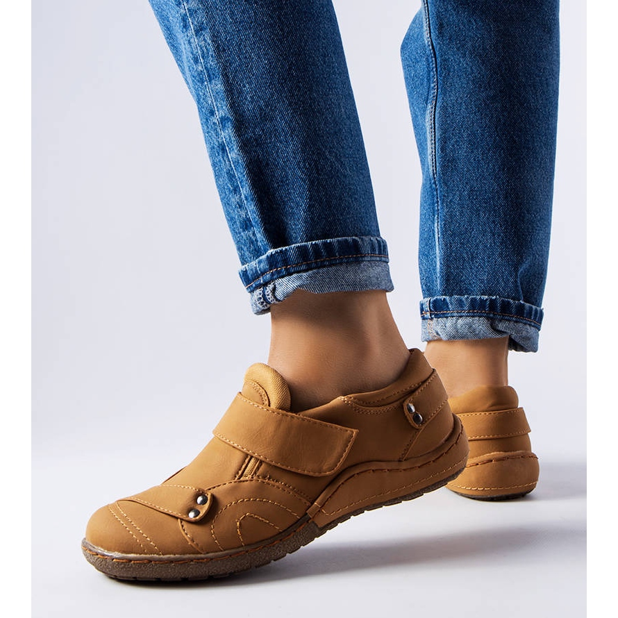 O clássico Sapatos Femininos da Cinisello na sombra de caramelo (camelo) é uma combinação de simplicidade e conforto. Feito de pele ecológica macia ao toque, presa com um velcro prático - ideal quando você valoriza o ajuste rápido e certo da correspondência. O modelo de 1788 tem um nariz redondo e um salto sutil de 4 cm de altura, o que acrescenta leveza, sem desistir de conforto.