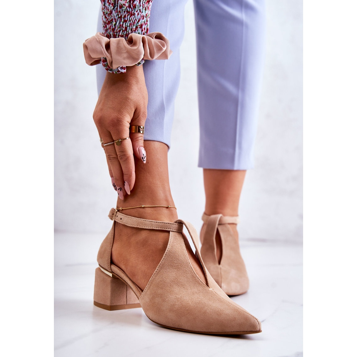 Laura Messi Sapato de camurça no salto Laura Messi 2309 bege claro