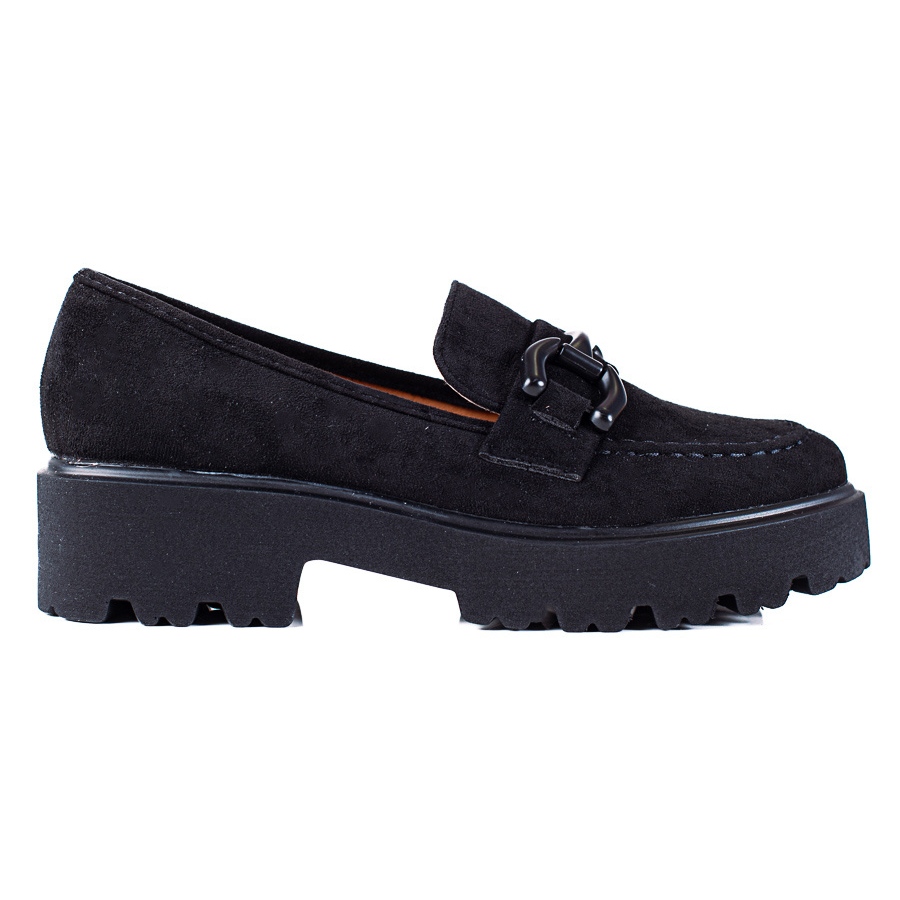 Feitos em camurça ecológica, esses sapatos pretos têm um visual extremamente elegante e sua biqueira redonda proporciona espaço adequado para os dedos. O interior do calçado é preenchido com uma combinação de 50% couro natural e 50% couro sintético, o que o torna agradável de usar o dia todo.