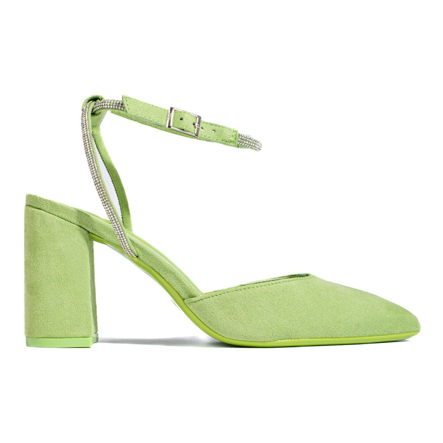 SHELOVET Sapato de salto aberto em camurça verde, Shelovet