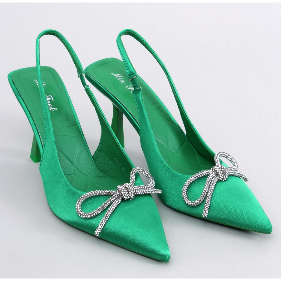 As bombas fenomenais femininas com um salto aberto, o que enfatizará o caráter único de cada criação. O acabamento de cetim na sombra verde e fina, o salto de 9 cm de altura, diminuirá lindamente a figura, enquanto o arco decorativo com pedras brilhantes (zircões) adiciona estilo e esplendor sutil. Perfeito para baile, casamento, bola ou outras ocasiões únicas.