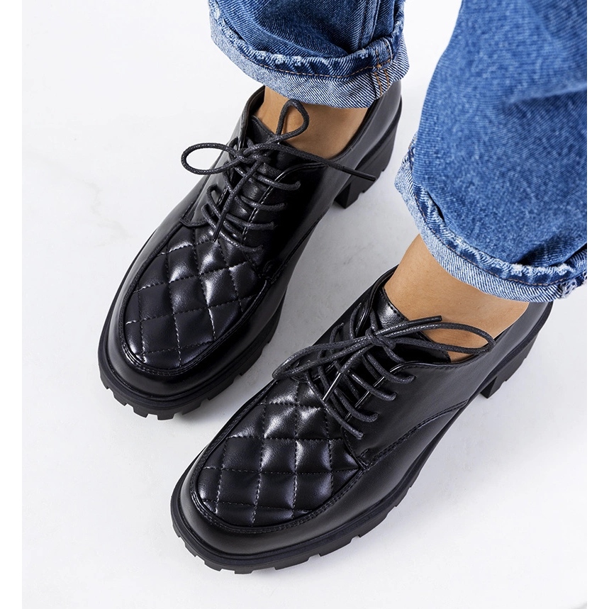 Sapatos pretos com terras de salto grosso - estilo e conveniência em um