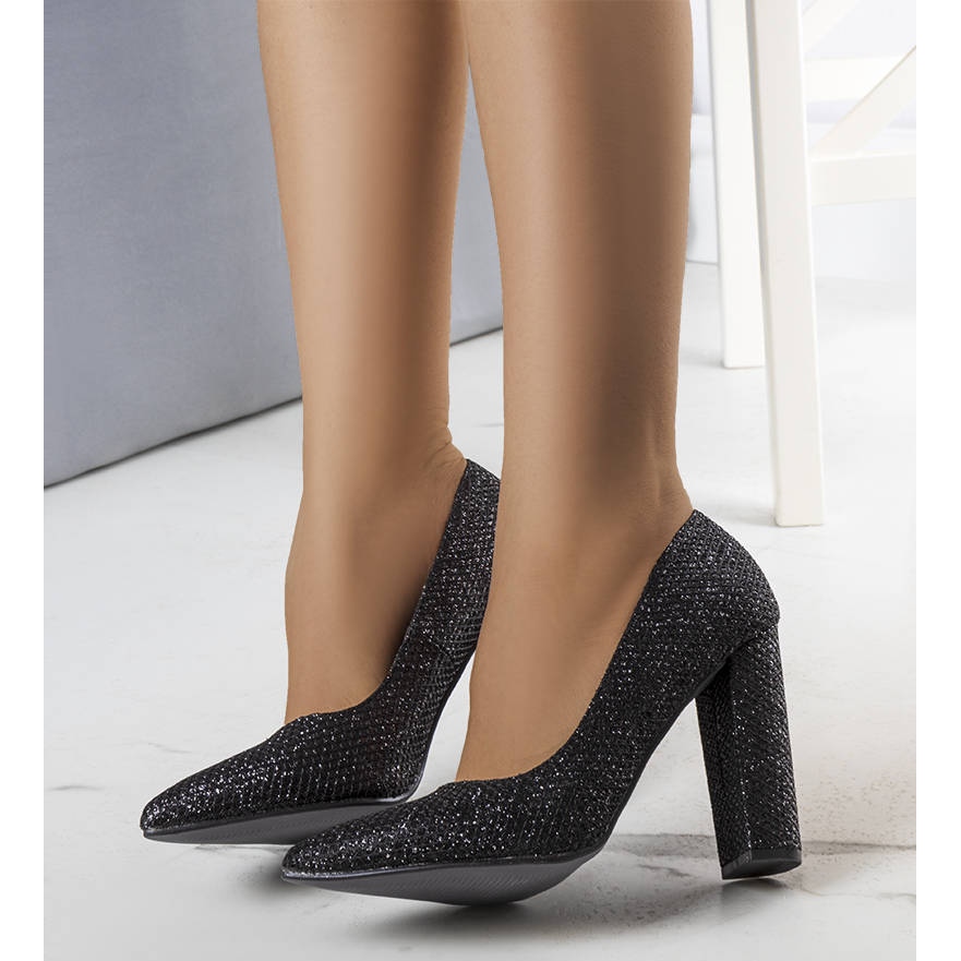 Detalhes: BM Sapato de salto brocado preto, Belle