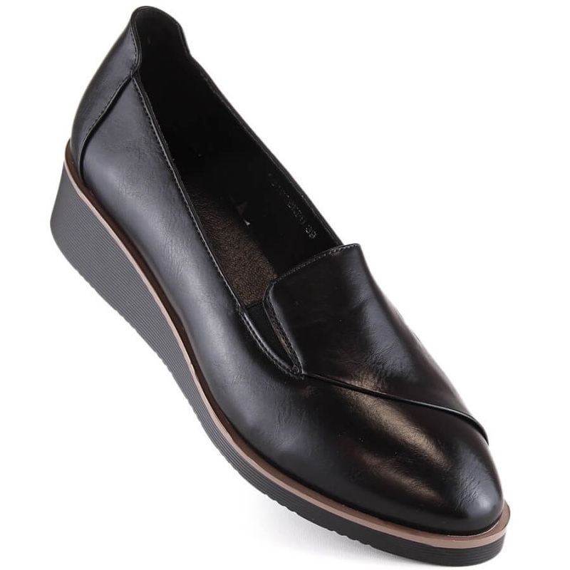 Sapatos para a cunha de Vincez em 230 de janeiro - calçados elegantes e confortáveis no clássico Black, que funcionará diariamente e durante ocasiões um pouco mais formais. A parte superior feita de couro ecológico fornece uma aparência elegante e resistente à sujeira, enquanto a inserção de couro natural garante conforto e melhor circulação de ar dentro do sapato. Uma cunha estável acrescenta alguns centímetros sem abrir mão de conveniência, e o corte baixo e esportivo faz do modelo um elemento universal de guarda-roupa.