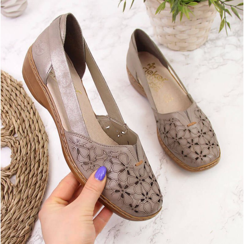 Uma proposta leve e confortável da marca Rieker bem conhecida - OpenWork Women's Shoes 41356 no elegante Pearl Beige. Perfeito para dias quentes: arejado, flexível e projetado para o máximo conforto dos pés.