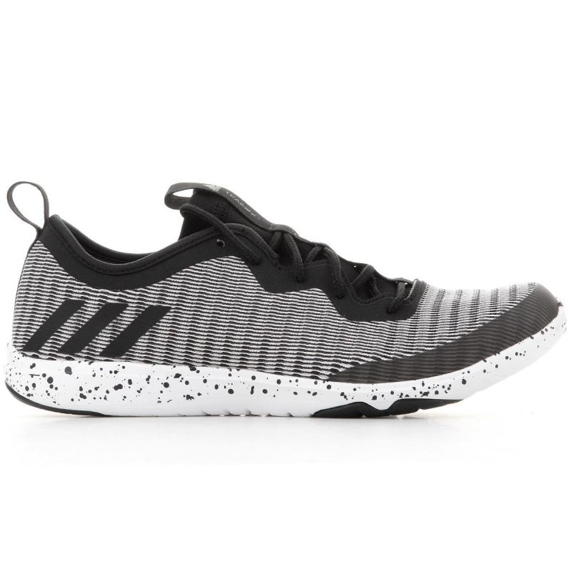 Adidas Crazy Move TR Tre em CG3279 - sapatos de treinamento cinza feminino, combinando leveza e conforto. Uma parte superior têxtil e flexível com uma estrutura semelhante a meia se adapta ao pé, fornecendo ventilação durante o exercício. O modelo está equipado com uma frente reforçada e calcanhar e um detentor prático de calcanhar para facilitar a instalação. A sola que não marking não deixa traços e garante boa adesão - ideal para treinamento na sala e todos os dias.