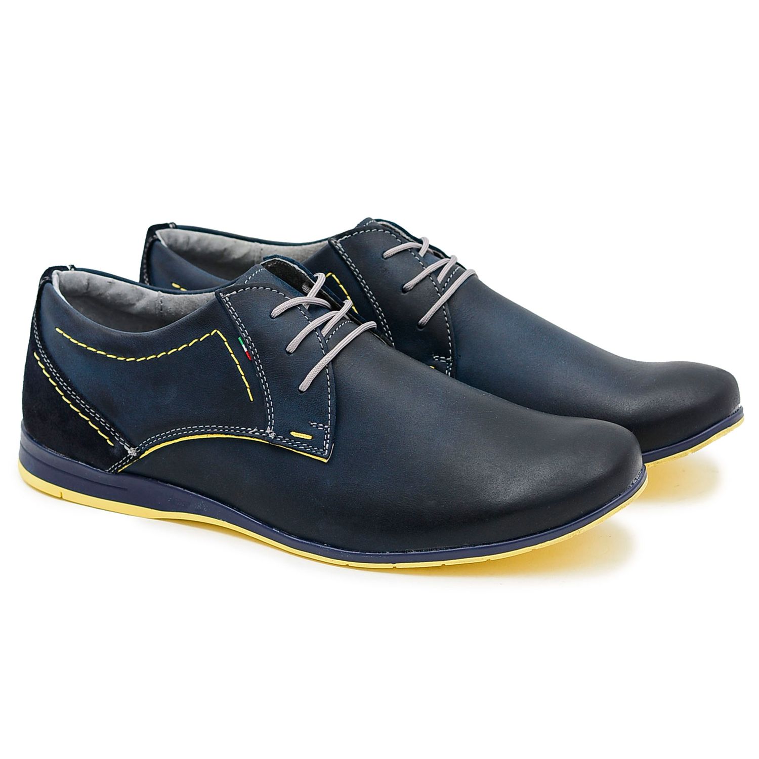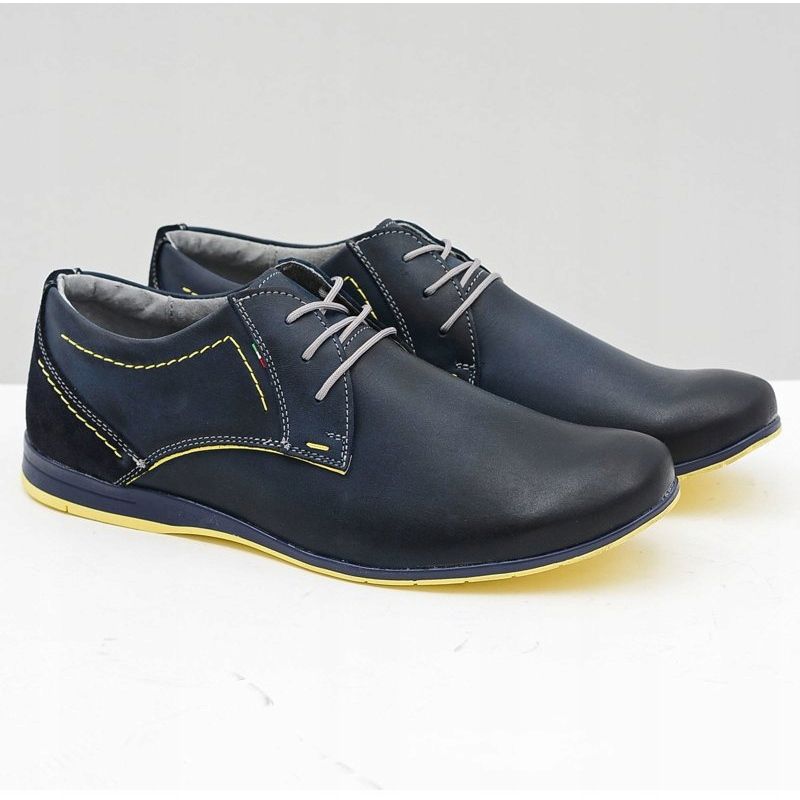 A palmilha perfilada em couro de alta qualidade garante conforto durante todo o dia e a sola sintética garante durabilidade e estabilidade. A cor azul marinho destes sapatos torna-os extremamente universais e fáceis de combinar com muitos estilos. Eles têm bico redondo e salto plano, o que os torna perfeitos para o uso diário.