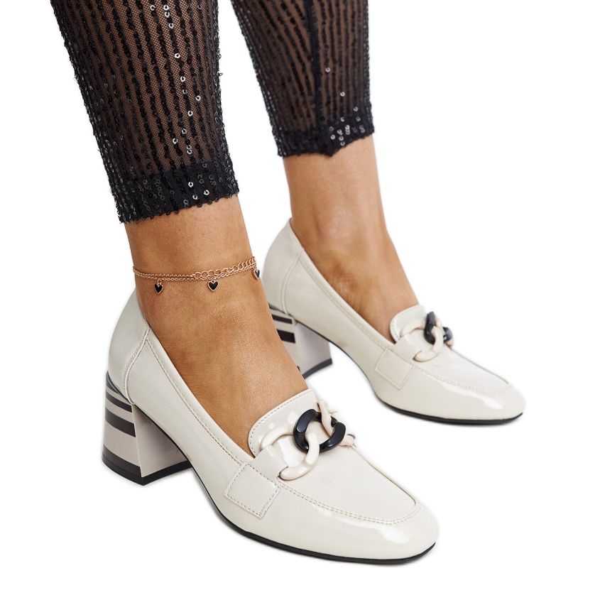 Graças à biqueira redonda e ao design baixo, estes sapatos slip-on serão uma ótima opção para o uso diário, independentemente da ocasião. A altura do salto de 5,5 cm os torna perfeitos para mulheres que valorizam o conforto e um estilo um pouco mais alto. Uma vantagem adicional é uma corrente atraente que lhes dá um toque de moda.