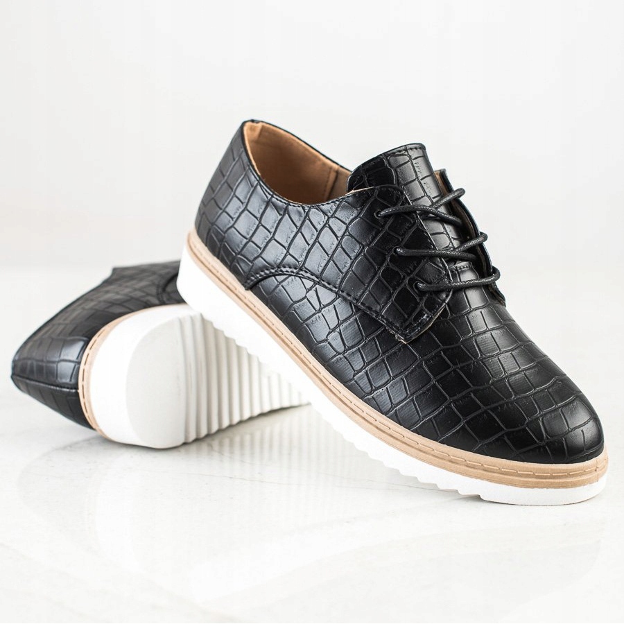 Estes sapatos pretos também apresentam um padrão animal único que os torna distintos. Graças à biqueira redonda, os seus pés ficam confortáveis e o fecho com atacadores permite um ajuste perfeito a qualquer pé. Os sapatos femininos SHELOVET são a escolha perfeita tanto para os passeios do dia a dia como para ocasiões mais elegantes.