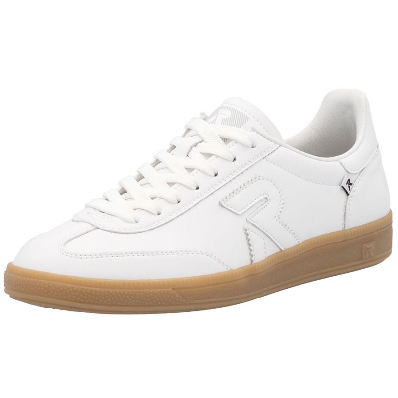 Rieker W2200 Sapatos brancos combinam um estilo esportivo e casual, o que os torna uma adição ideal para muitos estilos. Um nariz redondo e um acabamento baixo dão a eles um caráter moderno, e a sola bege contrasta bem com a parte superior branca, criando um todo harmonioso.