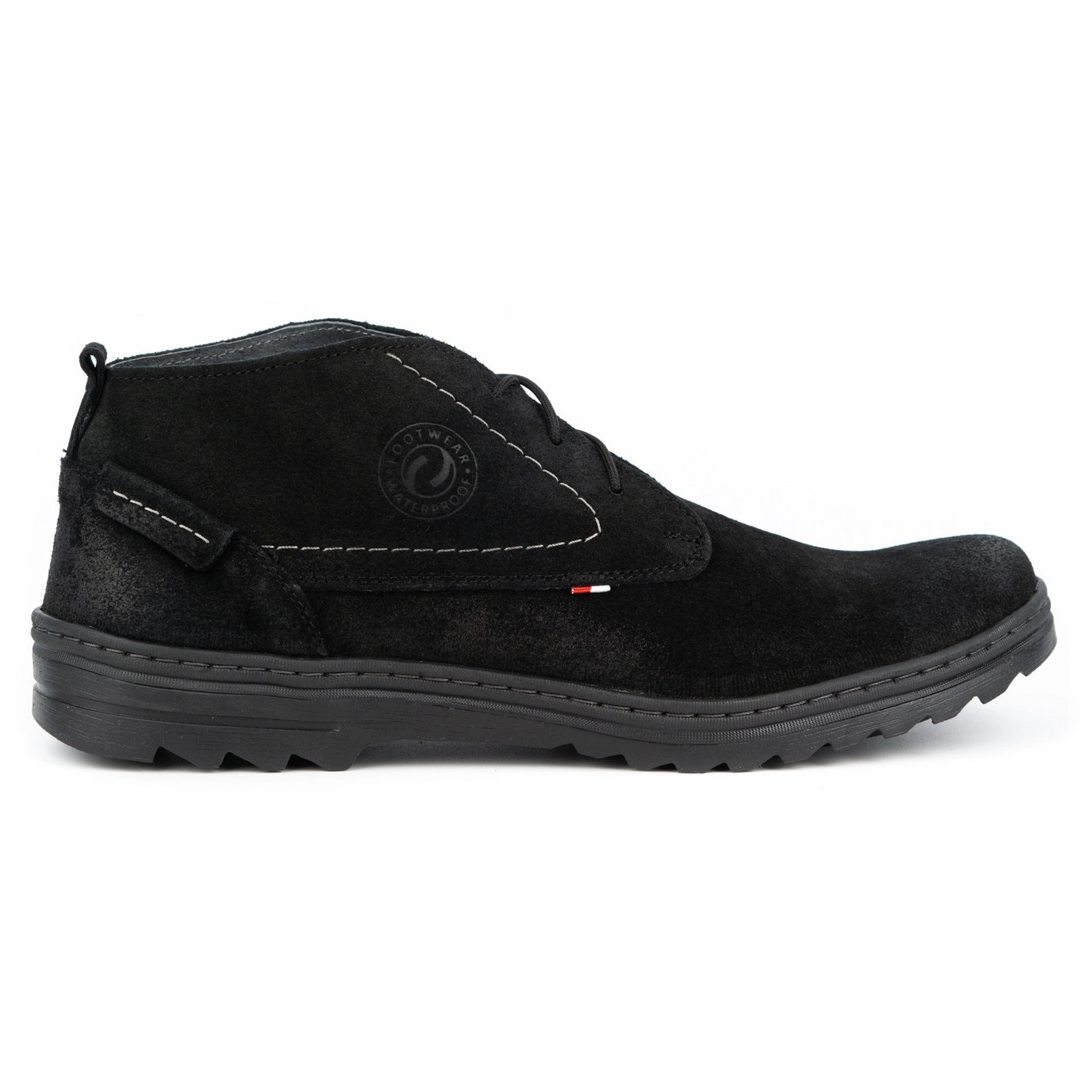 - Material externo: couro natural de camurça (preto)