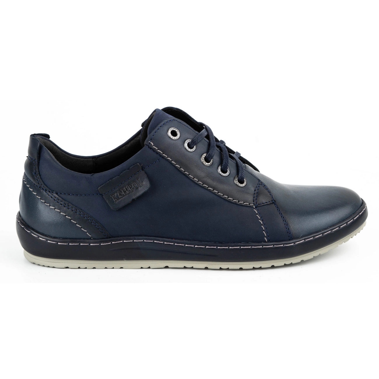 Sapatos clássicos, confortáveis e universais - Kampol 61kam em um tom elegante da Marinha são uma proposta para homens que procuram estilo todos os dias. Feito inteiramente de couro natural, eles combinam uma aparência elegante com o conforto de uso diário.