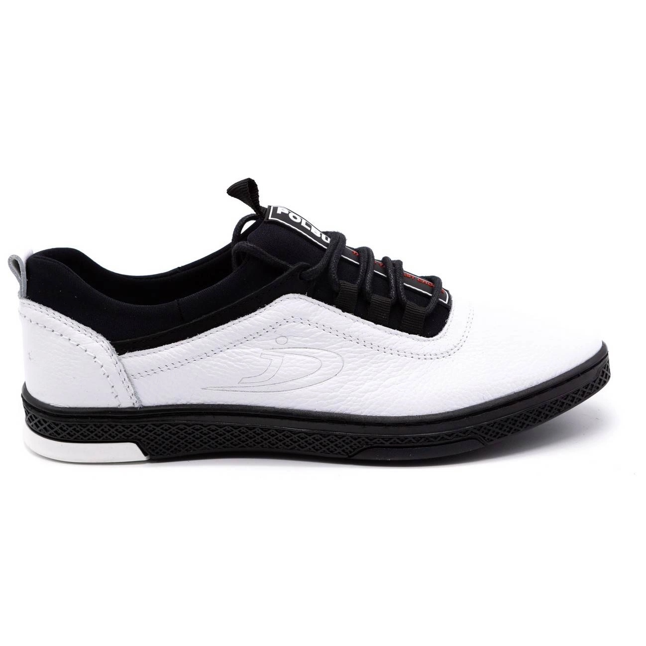 Detalhes: Polbut Sapatos casuais de couro masculino K24 branco com parte inferior preta preto