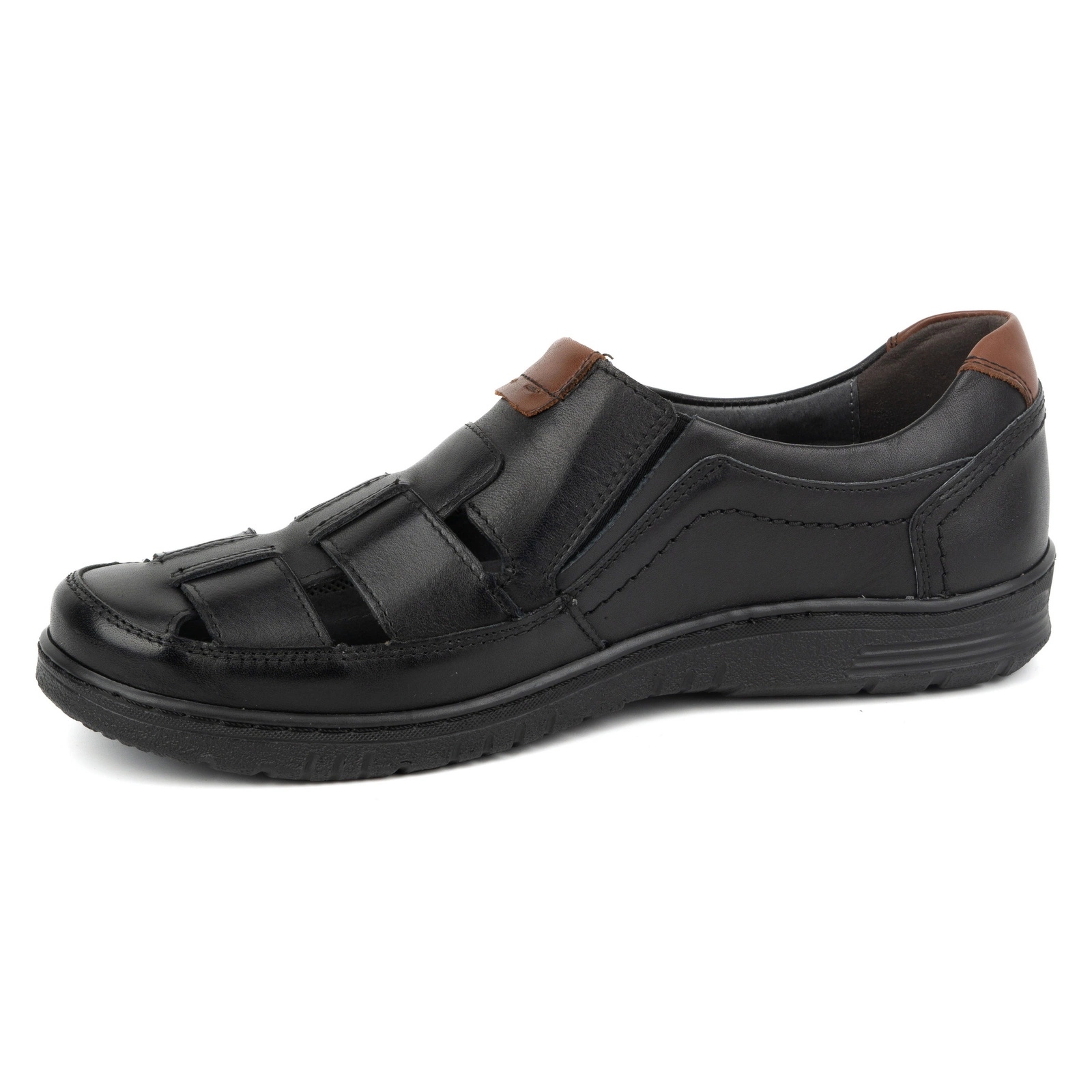 Esses sapatos são caracterizados por um nariz redondo, que enfatiza seu design elegante e um fecho deslizante, o que garante facilidade de colocar e remover. O interior dos sapatos feitos de couro natural garante o conforto do uso e a ventilação apropriada, o que os torna a escolha perfeita para cada estação do ano. Além disso, a sola de plástico de alta qualidade fornece adesão e amortecimento adequados ao caminhar.