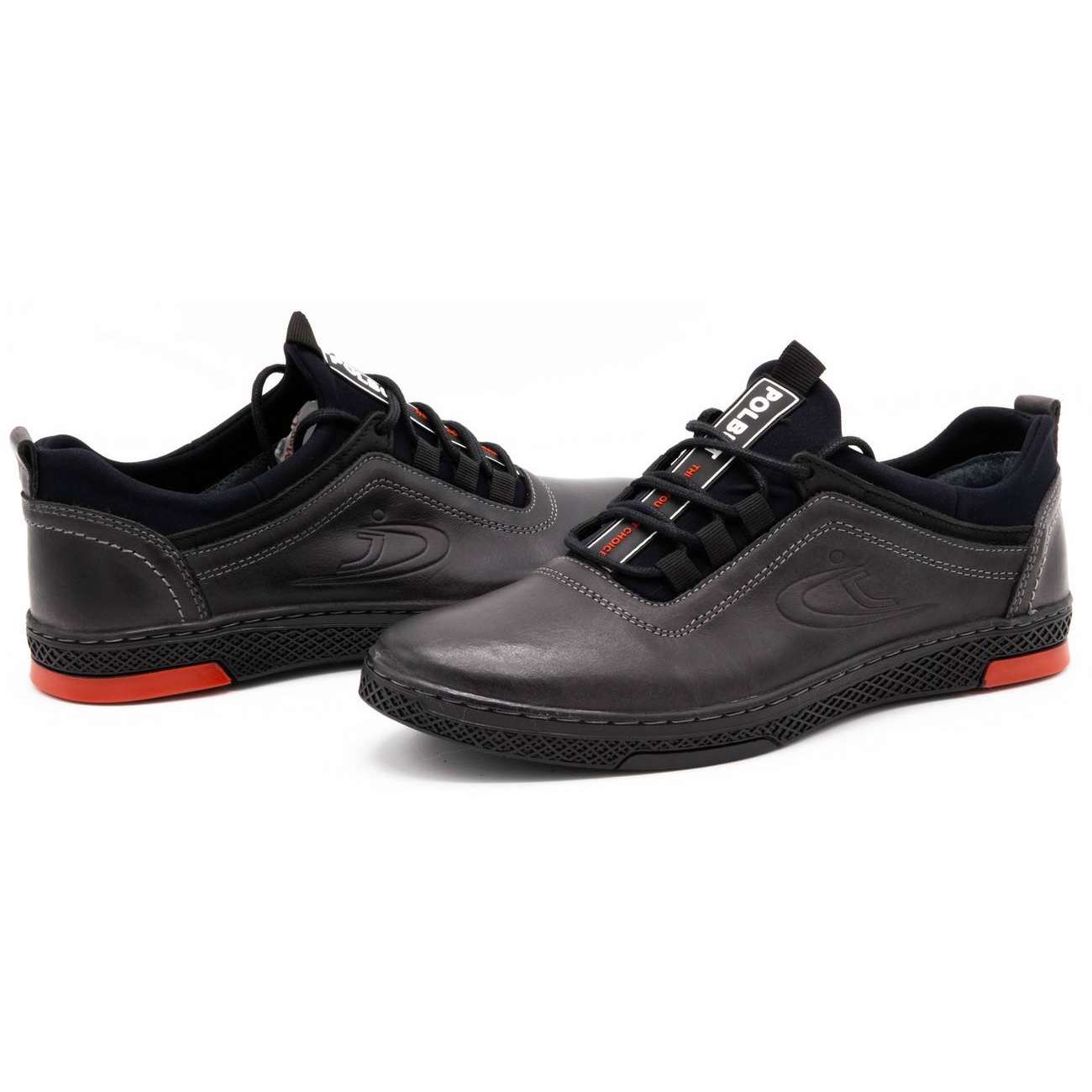 Polbut K24 - Sapatos de couro cinza masculino - Perfeito todos os dias. A combinação de clássicos e conforto: a parte superior e a inserção feita de couro natural garantem durabilidade e boa ventilação, e o design leve garante conforto ao longo do dia.