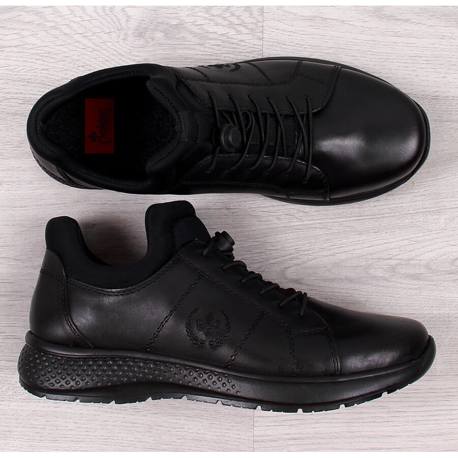 Detalhes: Sapatos casuais masculinos de couro preto Rieker B7694-00